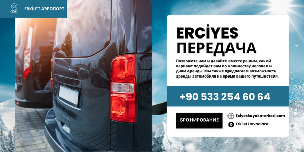 - Вариант трансфера в одну или две стороны из аэропорта Эрджиес или центра города Эрджиес (1–4 человека)